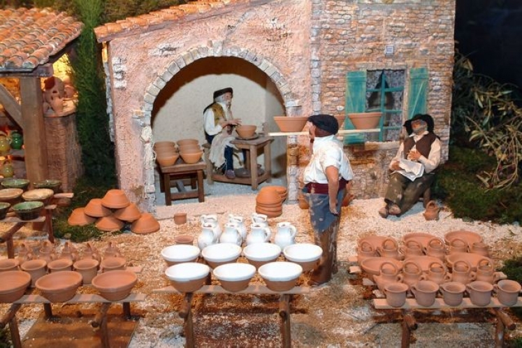 The figurines are not mass-produced, like the commercial Christmas artefacts which appear in the shops as early as October. Their charm lies in the faithful depiction of mostly 19th century provençal life and their mixture of the sacred and the secular. The Holy Family, the shepherds, the Wise Men, mingle with local inhabitants. Mary, Joseph and the infant Jesus are not centre-stage, but part of a wider depiction of each community, often complete with town hall, church, bakery and bar.