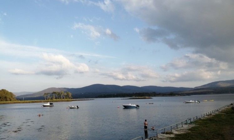 The Shanamere Hotel in Portstewart. A big grass lawn in front, and across the road, just below the steps to the Cliff Walk, two sea-water swimming pools emptied and filled with the tide. I remember my father teaching one of my sisters to swim by attaching his huge white cotton handkerchief to the straps of her swimsuit and holding it like a lead as she dog-paddled along the edge of the pool. (The Shanamere is long gone, but a friend of mine lives in one of the apartments where the hotel once stood. The sea-water swimming pools are gone too, alas.)